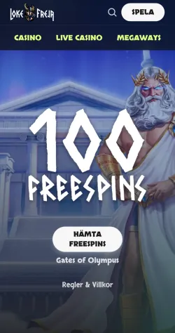 LokeFreja Casino erbjuder nya spelare 100 gratissnurr på sloten Gates of Olympus, men för att få dessa måste du sätta in minst 500 kronor.